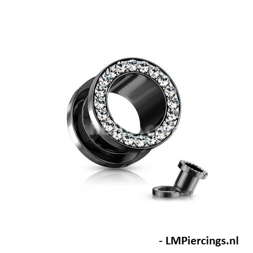 25 mm Screw-fit tunnel zwart met witte steentjes