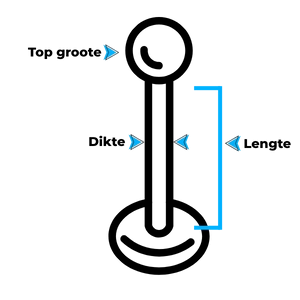 0.8 mm (20G) → iets dunner, dit is meestal als de piercing is geschoten