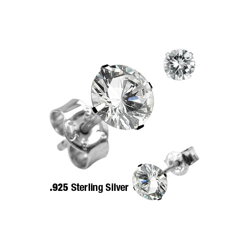 Oorbellen .925 silver rond CZ steen 0.8