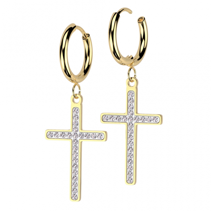 Oorbellen PVD kruis met steentjes ingelegd 0.8