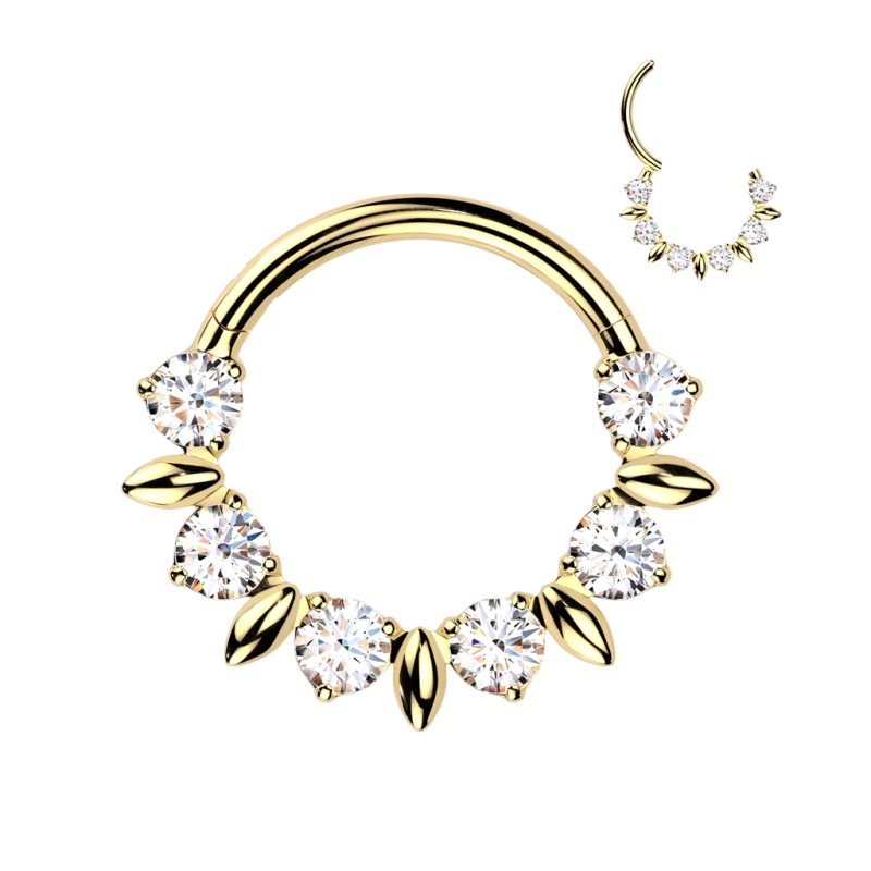 Piercing titanium ring 6front steentjes